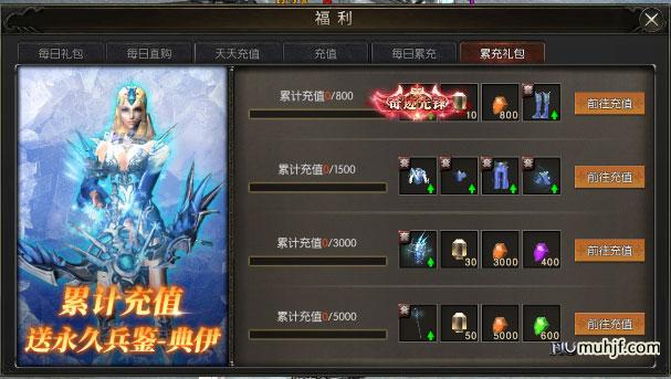 累计充值3000元:【套装】典伊之防具、生命宝石、臂章攻击石、臂章防御石;
